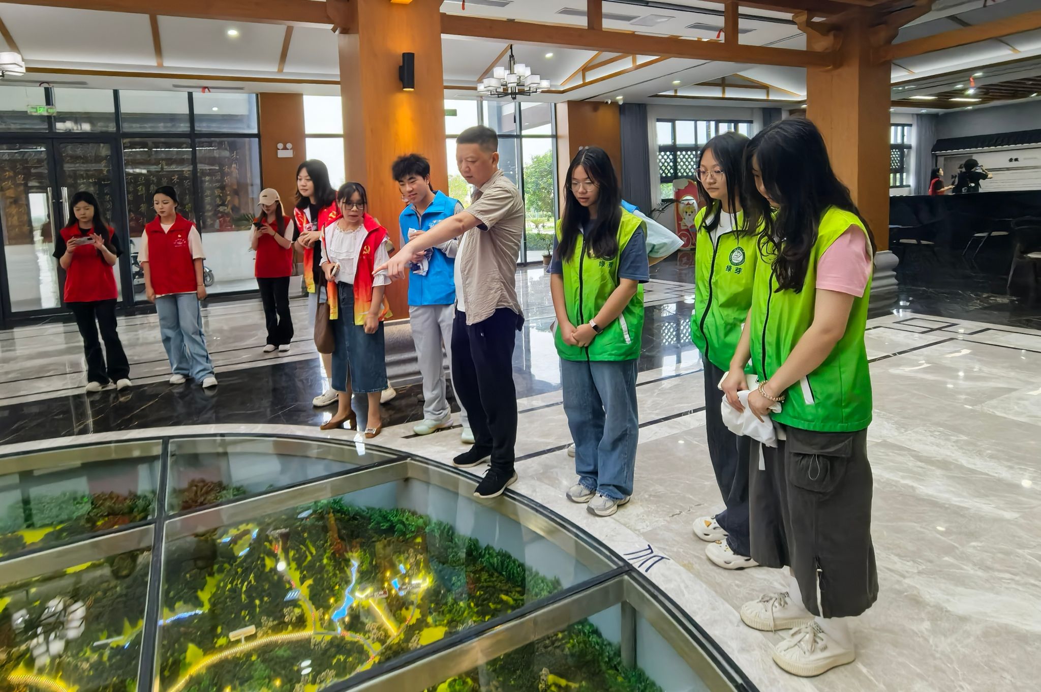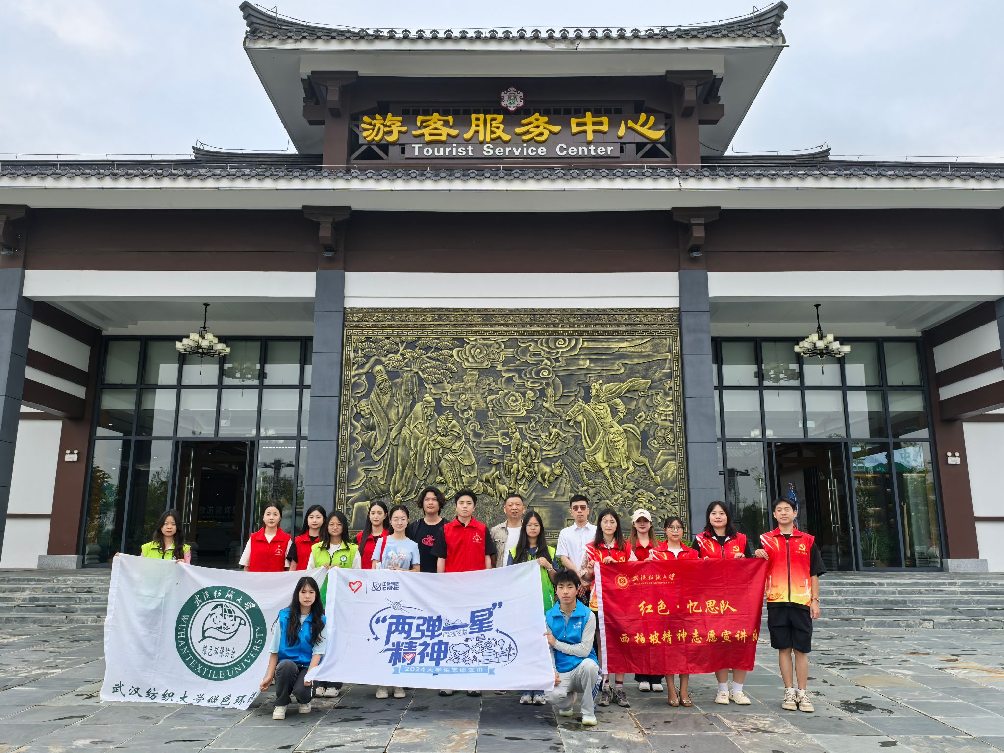 “这里是集游客服务、售票接待、智慧交通于一体的全域旅游集散中心。”在木兰文旅投工作人员的带领下,实践团走进木兰天地驿站,“木兰天地以黄陂非遗美食文化街区、民俗文化沉浸式体验地、夜间消费聚集地、全域旅游文化驿站四大特色街区为主的大型服务区,展现建筑美学与人文并存、传统演艺与匠艺结合的黄陂文旅融合新模式”。